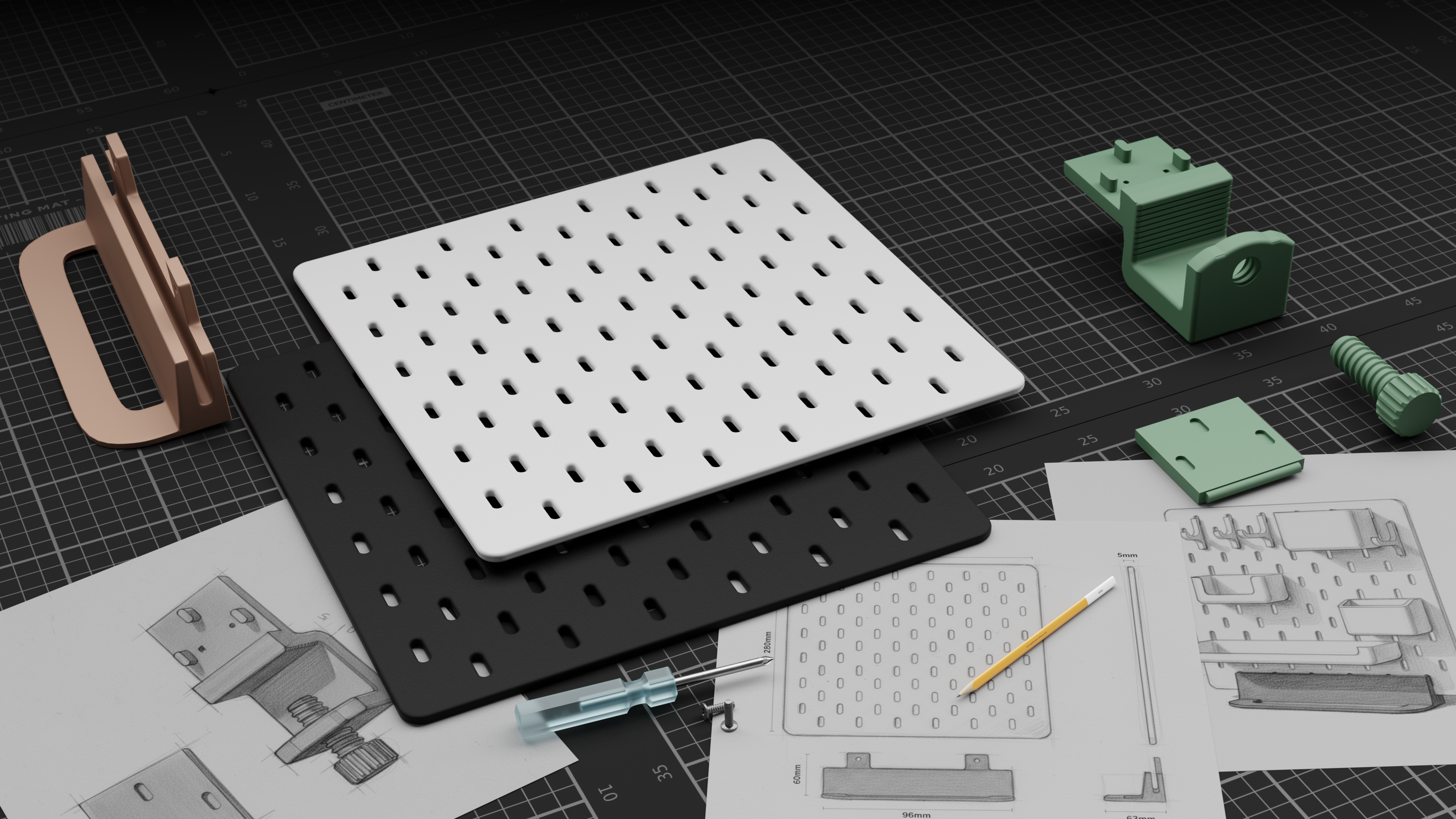 Upgrade your workspace with this 3D Printed Modular Desk Pegboard Skadis System, engineered for precision, durability, and effortless organization. Featuring a premium matte finish and a stable desk stand, this pegboard is built to keep your essentials neatly arranged and within reach.